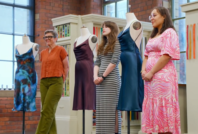 Órla, the youngest of the bunch in this year’s Sewing Bee cast, is still in the process of discovering her own fashion style, but sewing is helping her to explore a mix of feminine and androgynous looks. She began sewing four years ago, often for her friends and family, and hopes that one day she will have a completely self-made wardrobe.